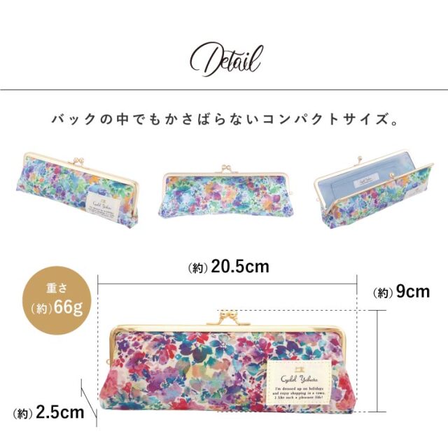 ●サイズ(約):本体 タテ 9cm × ヨコ 20.5cm (開口部分19cm) × マチ 2.5cm