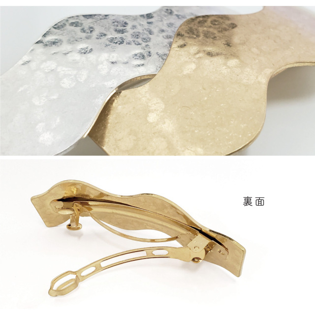 キラキラし過ぎない質感が大人っぽく上品でおしゃれなメタルプレートのバレッタです。
