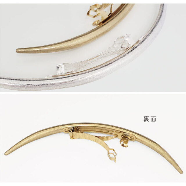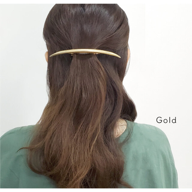 頭のラインに沿うようなカーブしたスティックのデザインのメタルバレッタです。