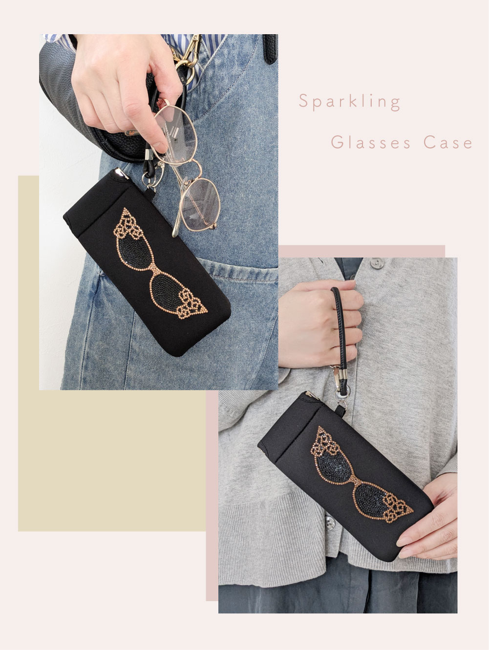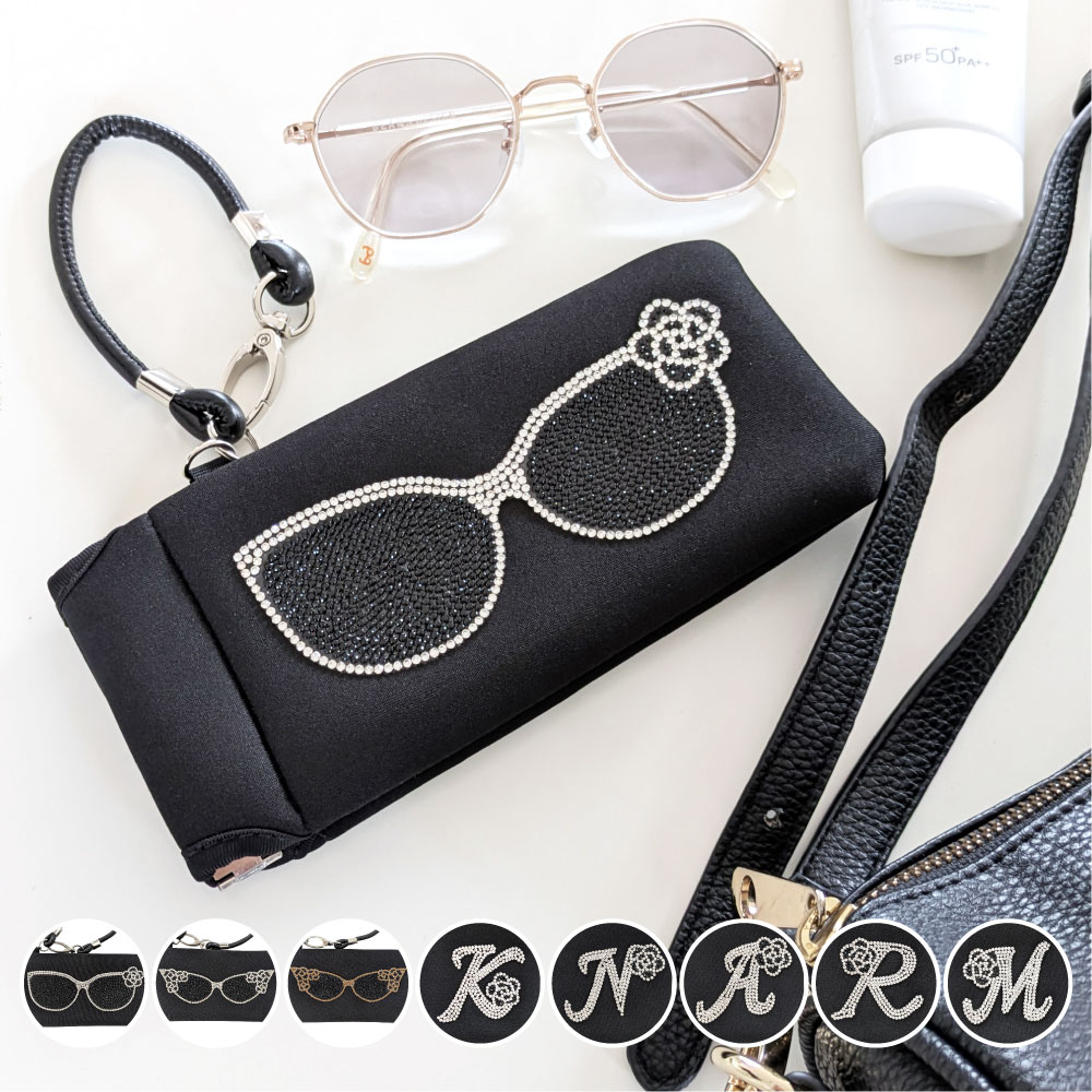 ラインストーンをハンドメイドでデコレーションした、キラキラ煌めくソフトメガネケースです。