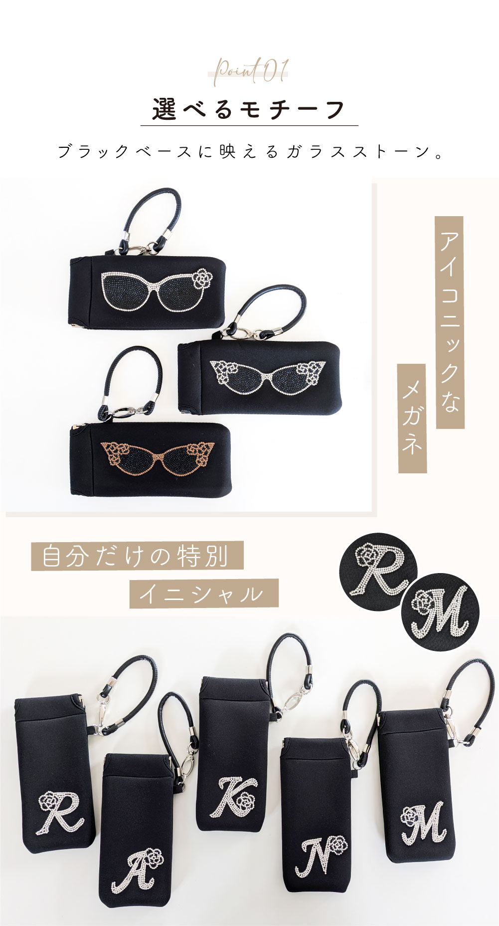 メガネとイニシャルの2デザインからお選びいただけます。