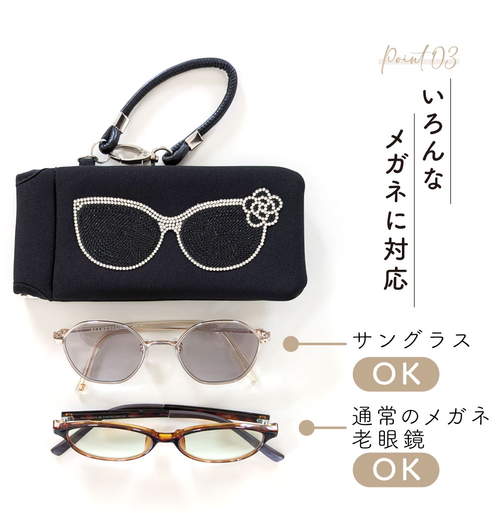 眼鏡のフレームの大きいものは収納出来ない場合がございます。