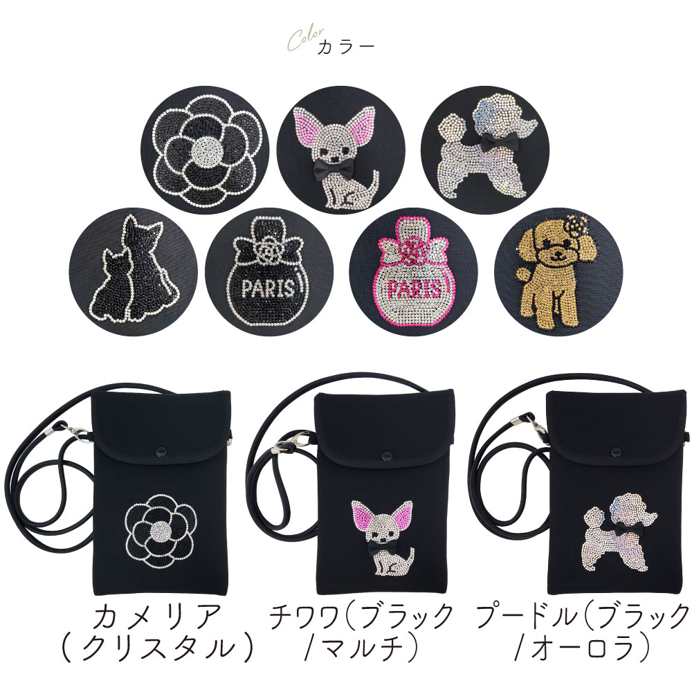 キラキラのデコレーションを施した、トレンドのスマホがすっぽり入るミニショルダー。