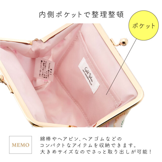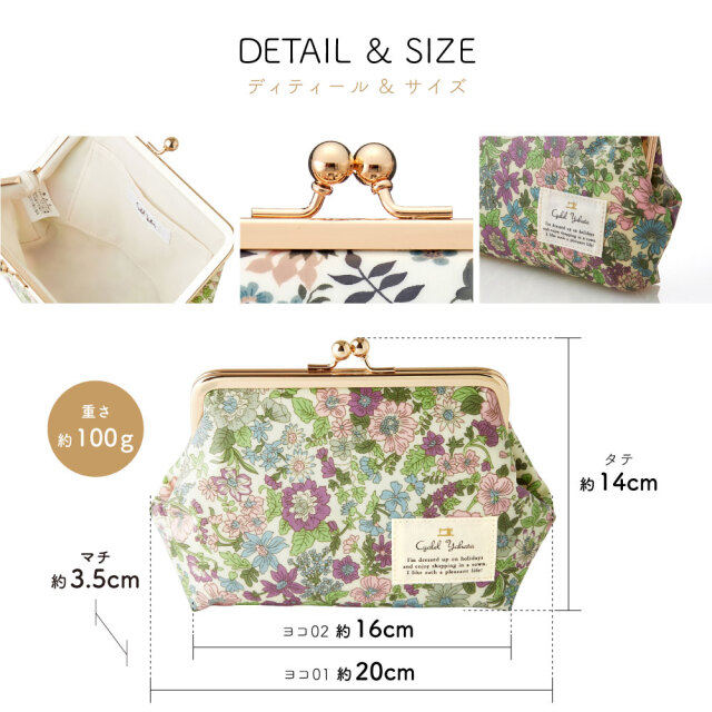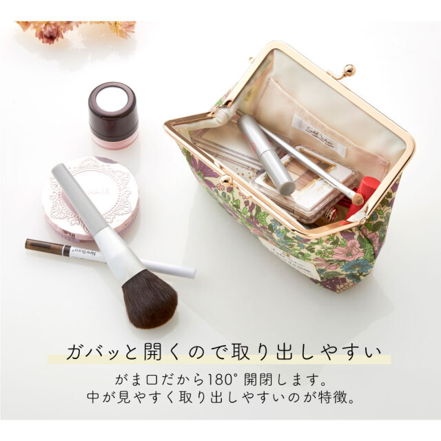 ガバッと開くがま口は取り出しやすく、きらりと上品なゴールドがポイント。