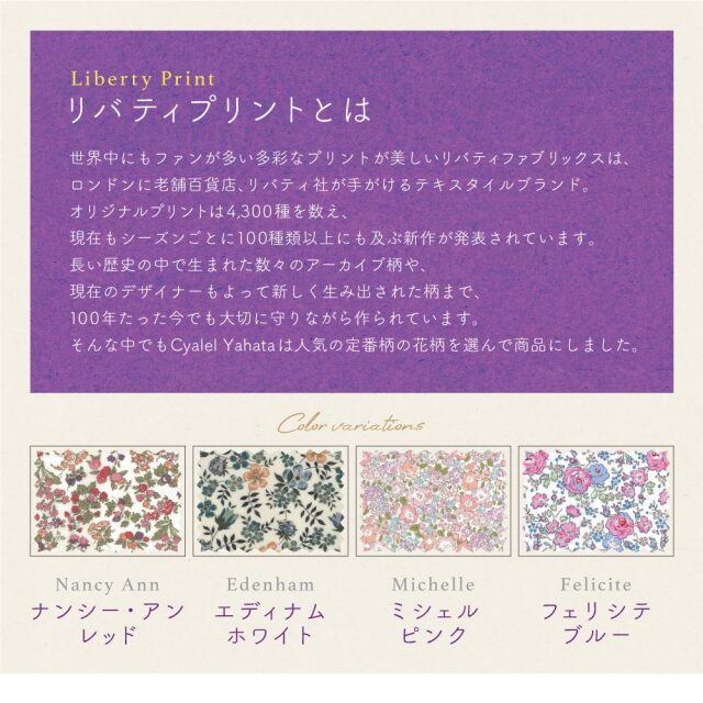 世界中から愛されるリバティプリントはファンも多く、ギフトにもおすすめです。