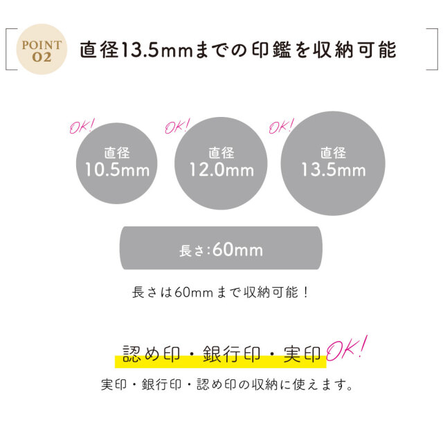 直径13.5mm・長さ60mmまでの印鑑を収納することができます。