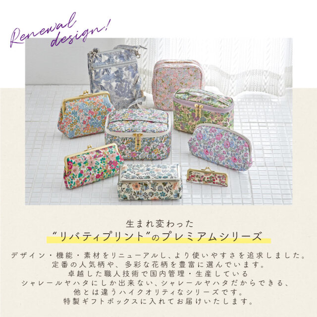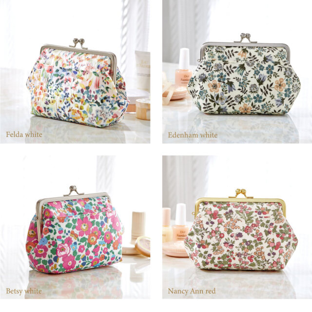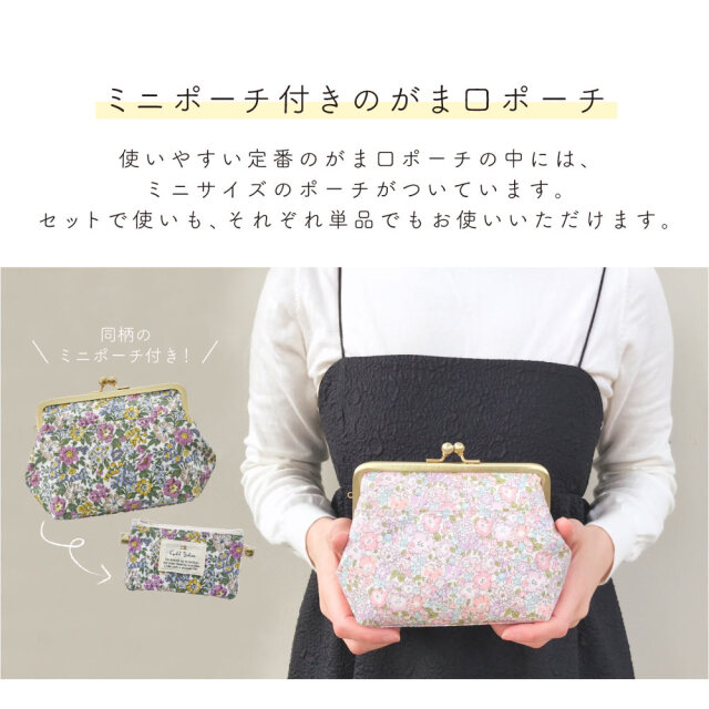 世界中にファンも多い、多彩な花柄プリントが美しいリバティプリントとサテンのような質感の上品で高級感のあるサティーナ加工のがま口を使用した、特別ながま口ポーチです。