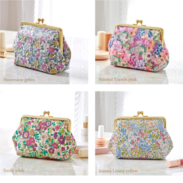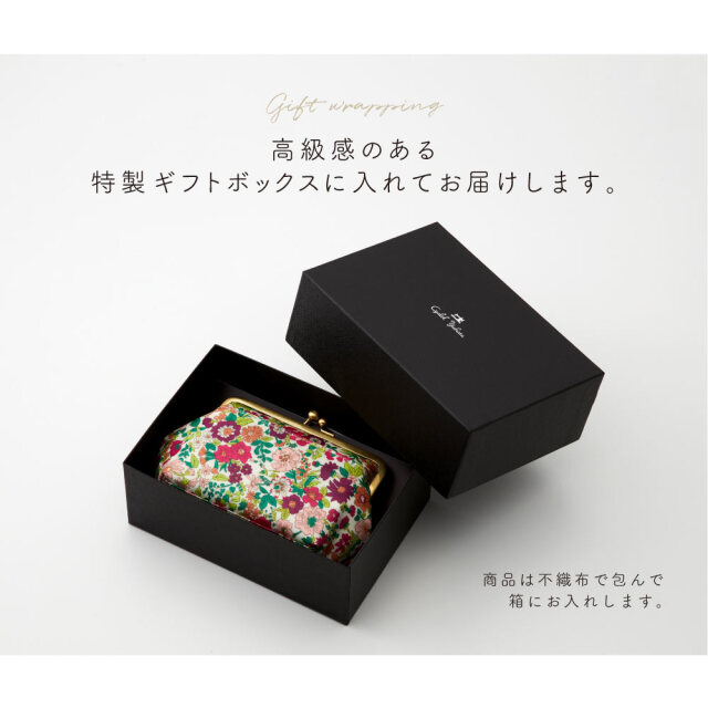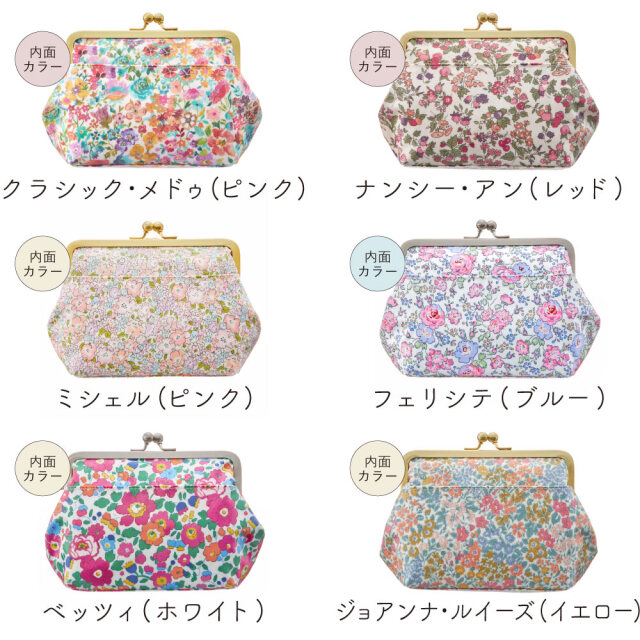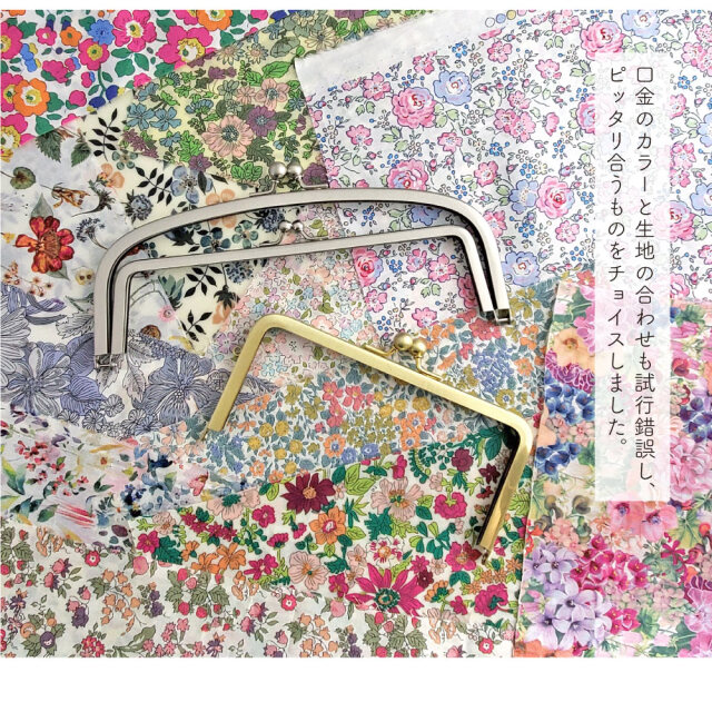 がま口は安心で高品質の日本製の口金にサティーナ加工を施しているので上品なサテンのような質感と高級感がリバティプリントと絶妙にマッチします。