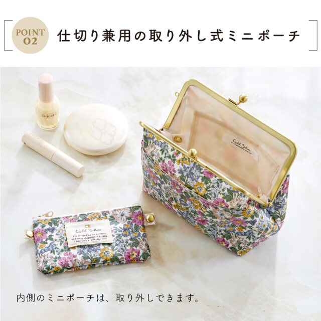 中には表生地と同柄の取り外し可能なミニポーチが付いています。