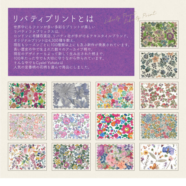 多彩な花柄のプリントが美しいリバティプリントの生地を使用。