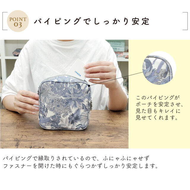 しっかりパイピングが付いているデザインなのでポーチの形が綺麗。
