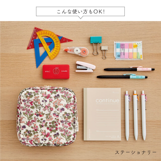 ペン類や文房具などをまとめて入れても収まりの良いサイズ。