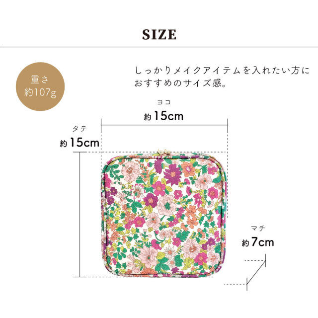 ●サイズ(約):本体 タテ 15cm × ヨコ 15cm × マチ 7cm