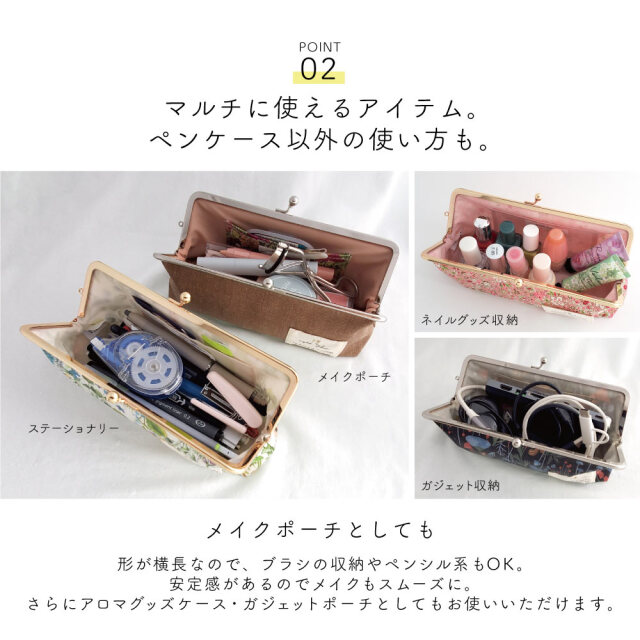 ペンケース以外にも、化粧ポーチなどにもお使いいただけます。