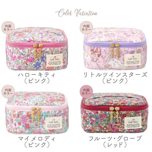 人気のバニティポーチに、ハローキティ、リトルツインスターズ、マイメロディとリバティプリントがコラボした、大人かわいいポーチが新登場♪