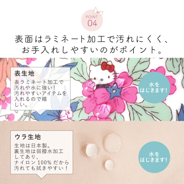 表生地はラミネート加工で汚れや水に強く濡れてもさっと拭きとれてお手入れも楽々です。