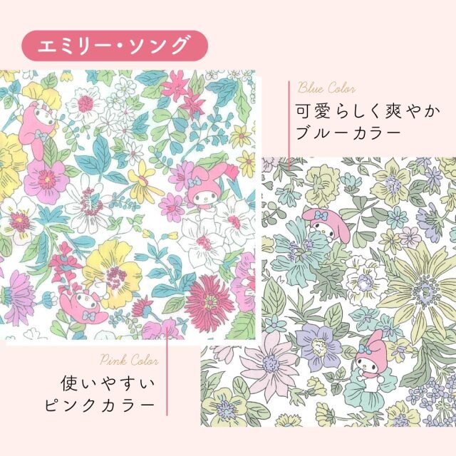 マイメロディとリバティプリントとのコラボレーション柄が大人可愛い