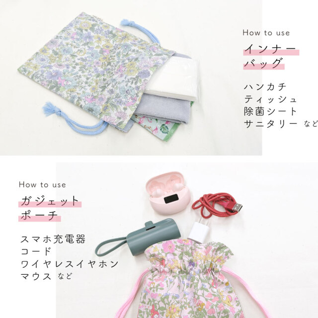 コスメポーチとしてはもちろん、バッグの中の小物をざっくりとまとめて収納するのに便利なアイテムです。